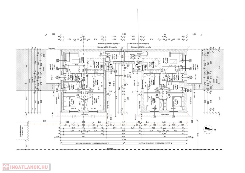 48 cm-es falvastagságot jelent. A ház fűtése hőszivattyúval lesz megoldva padlófűtéssel, így a fűtésköltség alacsony lesz. A ház energetikai besorolása A++ -os előírásoknak megfelelő.