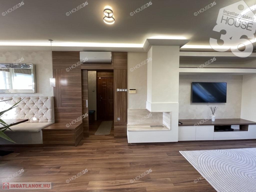 A lakás bruttó 93 m2, lakberendező által kialakított, prémium minőségű, ottmaradó beépített stílusos, egységes bútorzattal, magas színvonalú gépekkel felszerelve!