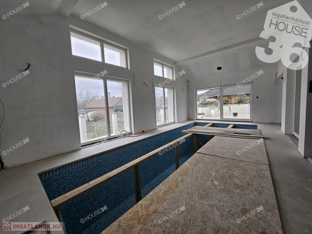 -burkolt beltéri medence (terasz-és nappali felé) még befejezésre vár, hozzá zuhanyzó-és wc