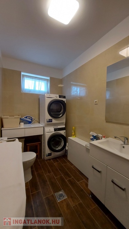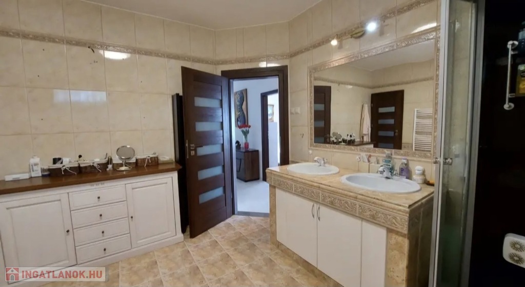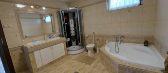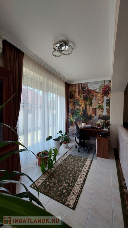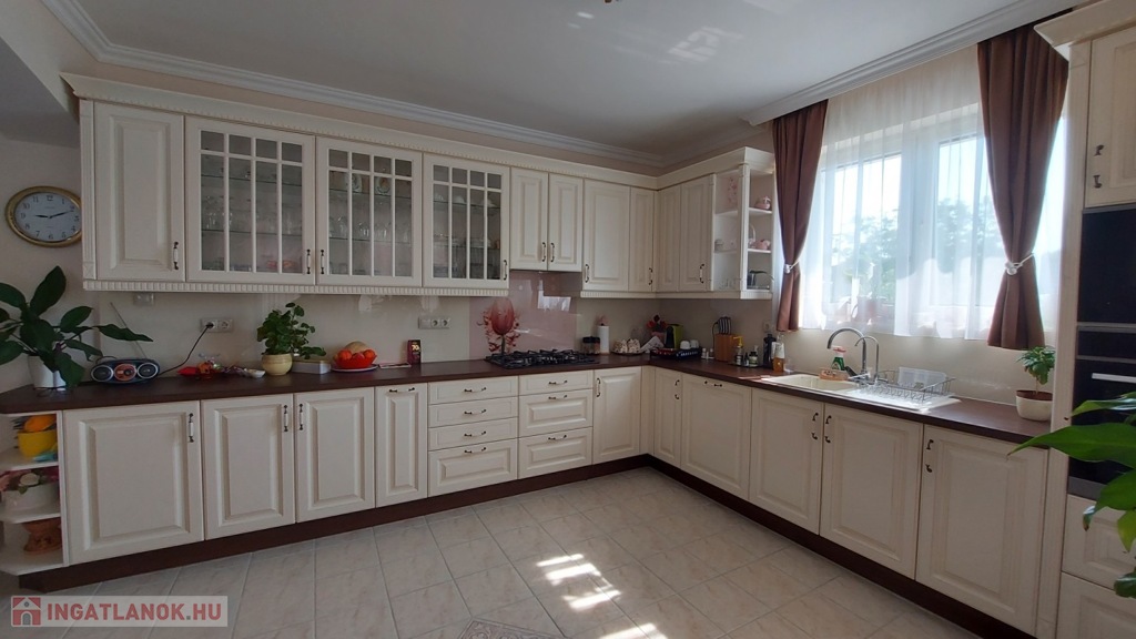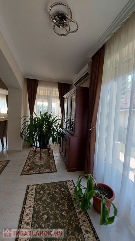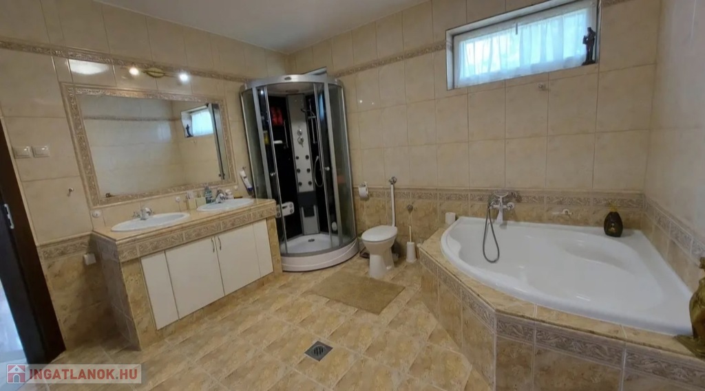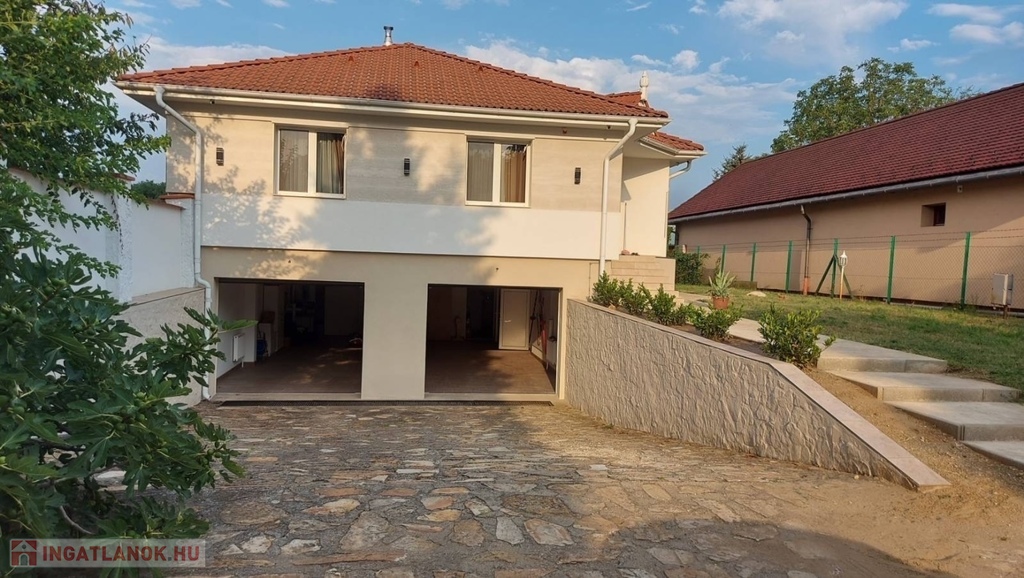 A 160 nm-es fűthető alagsor paraméterei: 4 autó számára is tökéletes garázs, 2 elektromos garázsajtóval Wellness részleg szaunával és Jakuzzival 4 külön zárható helyiség, mely kitűnően alkalmas konditerem vagy borospince kialakítására is Kazánház WCA nappaliból és a konyhából egyből a déli fekvésű, rendezett kertre néző hatalmas teraszra juthatunk ki, pár lépés a fedett, de megfelelő időjárás esetén nyitható tetejű nagyméretű ÚSZÓMEDENCE (8m x 3,5m x 1,5 m), ami az év nagy részében használható.A ház minden igényt kielégít,- riasztórendszerrel, távfelügyelettel, kaputelefonnal, kerámia cserépkályhával, radiátor, padlófűtéssel, klímával, elektromos redőnnyel felszerelt.A kert öntözőrendszerrel, filagóriával, ellátott.