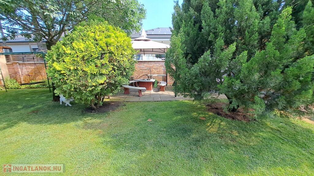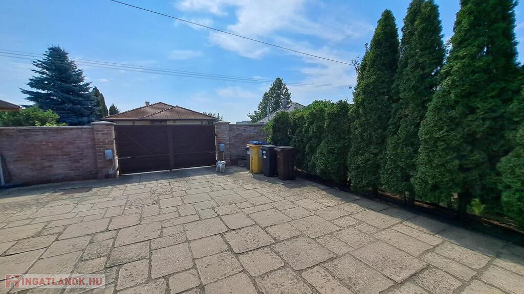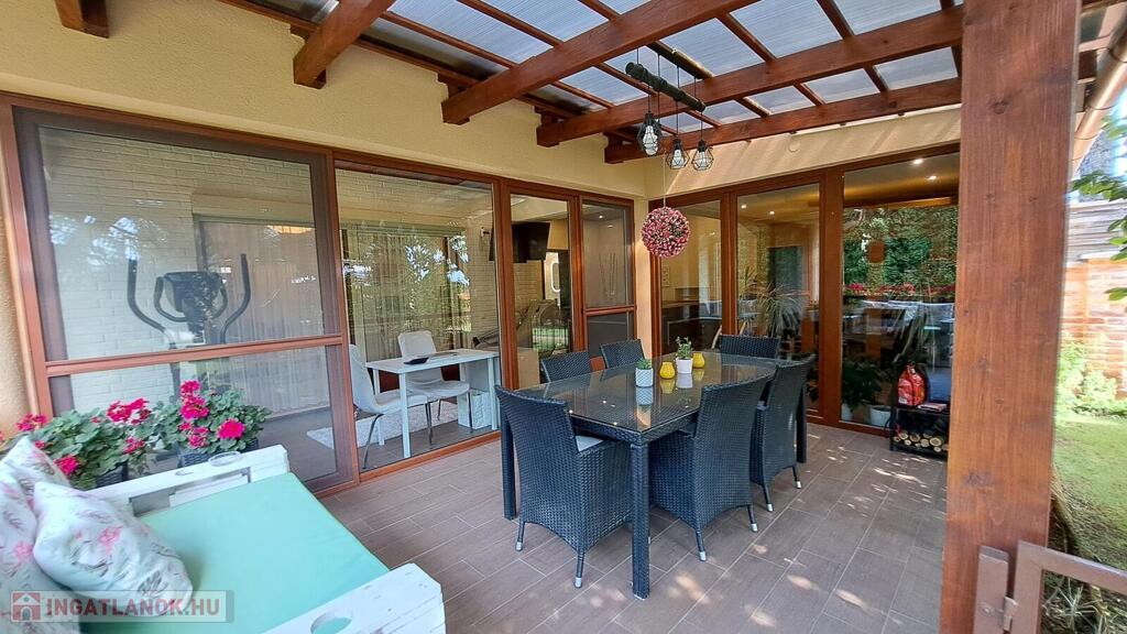Eladó a Praktiker közelében egy 2009-ben épült, mediterrán stílusú, 3 szoba + nappalis, téglából készült, szigetelt családi ház. Az ingatlan egy 741 nm-es, gondosan parkosított telken fekszik, ahol kétállásos garázs, fedett terasz, saját wellness részleg és fűtött télikert is található.