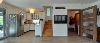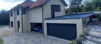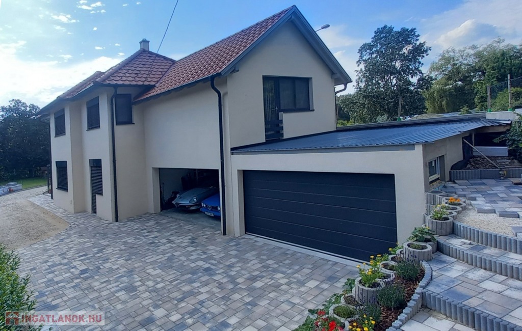 - Parkolás a garázsokban (két dupla garázs), a telken ill. az utcán is lehetséges. Az egyik garázs a ház részeként, azzal megegyező szerkezettel, hőszigetelt falakkal épült, így igény szerint itt egyszerűen kialakítható egy újabb külön lakrész, vállalkozásra alkalmas helyiség. (a víz és csatornacsatlakozások rendelkezésre állnak).