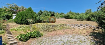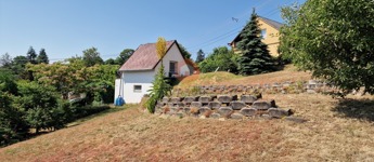 A telek enyhén lejtős, ideális hétvégi háznak, hobbikertnek, de hosszabb távon akár lakhatásra is.