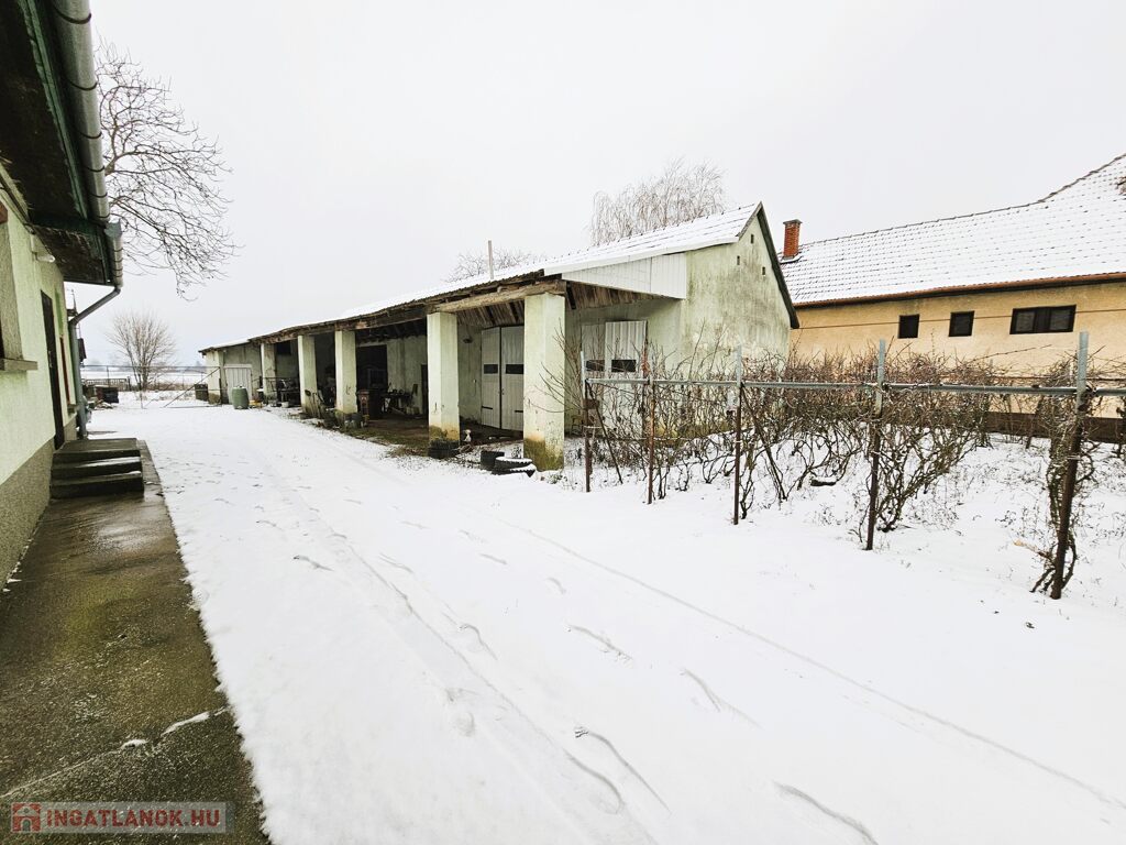 A házhoz tartozik egy 16,7 m²-es, elektromos kapus garázs és egy 32,6 m²-es fedett terasz, így a hasznos alapterület 170 m². Az épület alatt 100 m² pince, valamint beépíthető tetőtér is rendelkezésre áll. Az udvaron több melléképület, a telek végében kert található, fúrt kúttal, összközművel és 3 fázisú árammal.