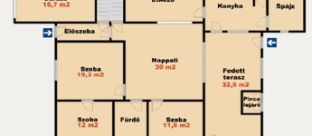 - Zárt, fedett terasz: 32,6 m2