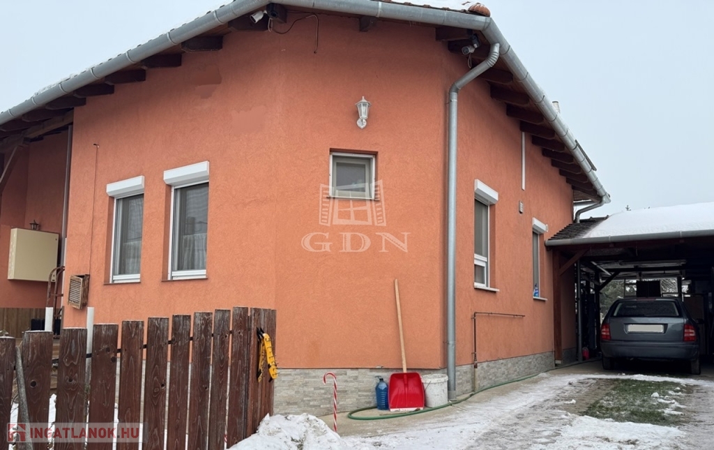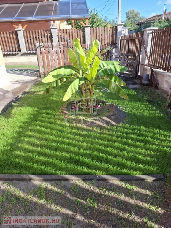 A parkosított, gondozott kert, fedett gépkocsi beállóval, fedett terasszal, fúrt kúttal, tárolóval várja új tulajdonosát!