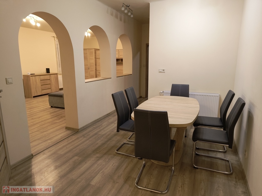 Nyíregyháza Korányi F. utcán, téglaépítésű, szigetelt, 150 nm lakóterületű 3 szoba + nappali, étkező konyhával, nagy fedett teraszkapcsolattal, beépített gépesített konyhabútorral, 2 fürdő és 2 wc-vel, gardróbbal, járólap és laminált padló burkolattal, egyedi gáz fűtéssel, inverteres 5,5Kw-os klímával, 3 réteg üvegezésű műanyag nyílászárókkal, szép állapotú ikerház, 50 nm-es alaksorral + 1 állásos garázzsal + autóbeállóval, kb 500 nm-es parkosított telken, április 1 től költözhetően részben bútorozva kiadó, akár cég részére is.Az ingatlan azonosítója: 96881Érdeklődni: +36702560693 Az ingatlan azonosítója: 96881 Érdeklődni: +36702560693