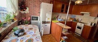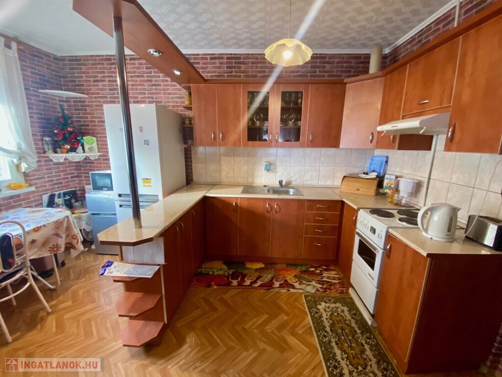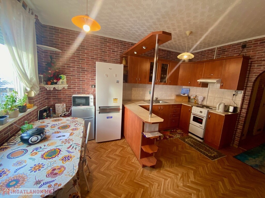 A képeken látható bútorzat, valamint a teljes gépesítés – beleértve a hűtőszekrényt és a mosógépet is – a vételár részét képezi.