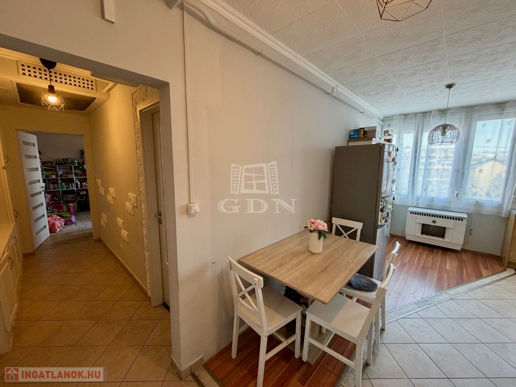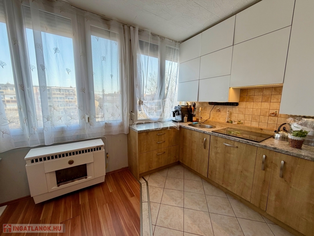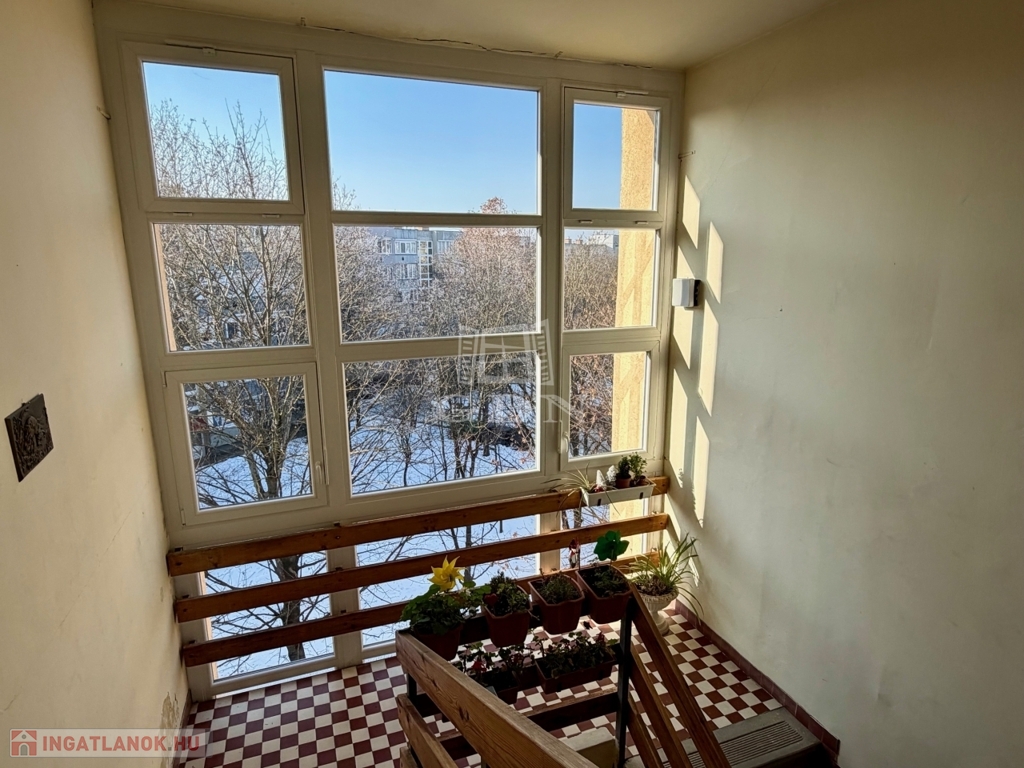 A 60 m2-es lakás a 4. emeleten helyezkedik el, keleti fekvéssel.