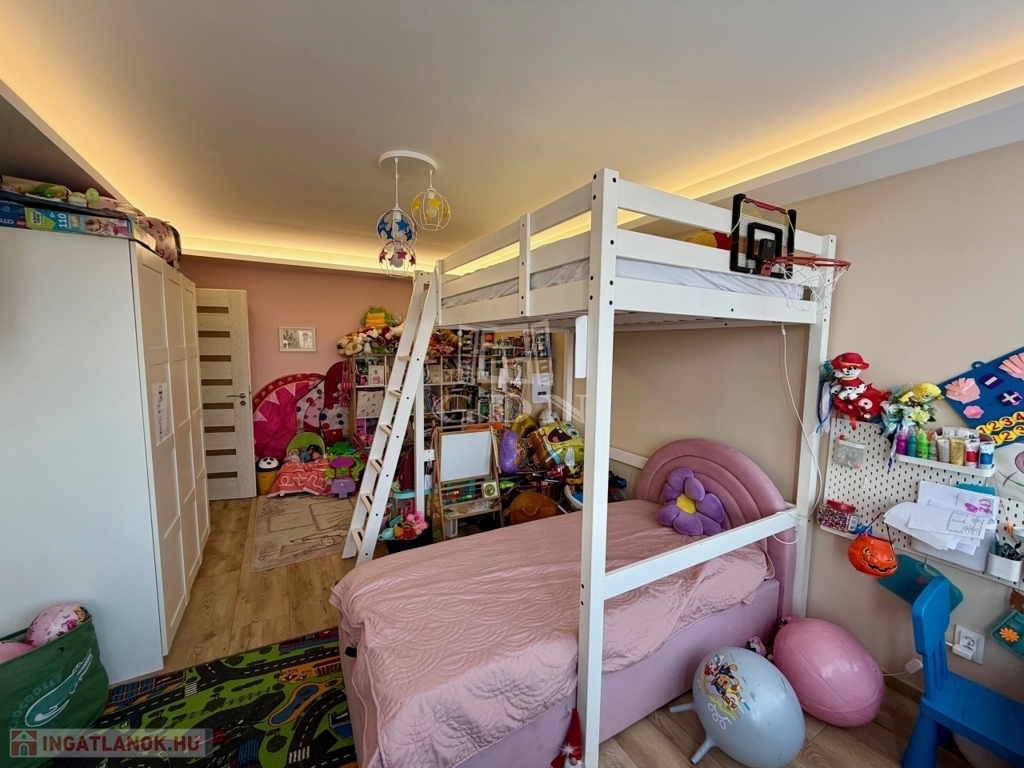 Így is volt kialakítva, de mivel a gyerekeknek kellett a tér, egybe lett nyitva a szoba.