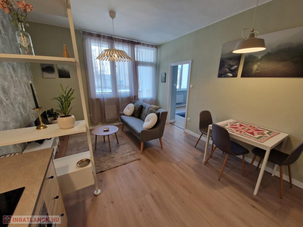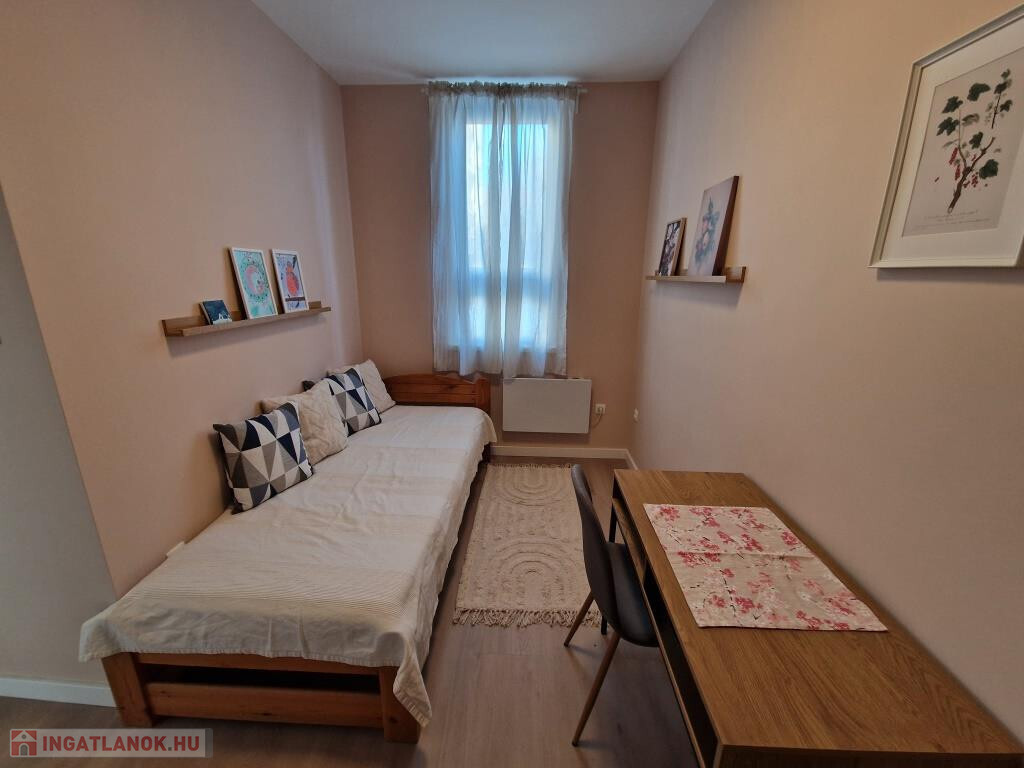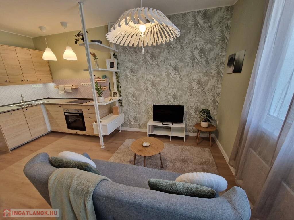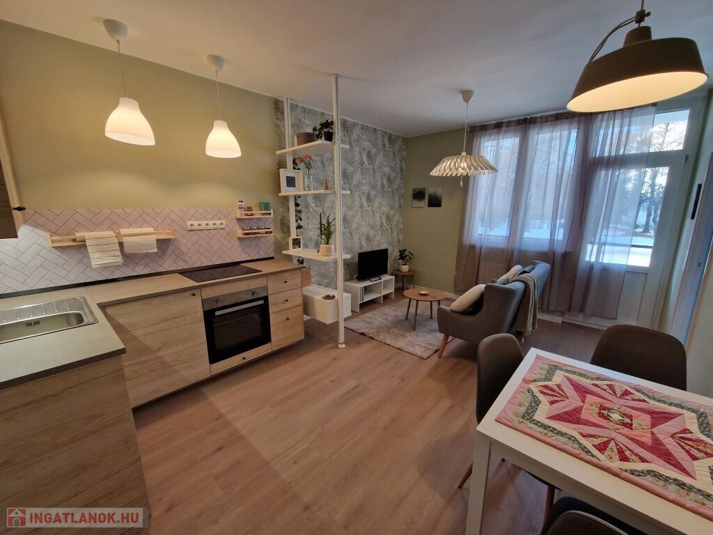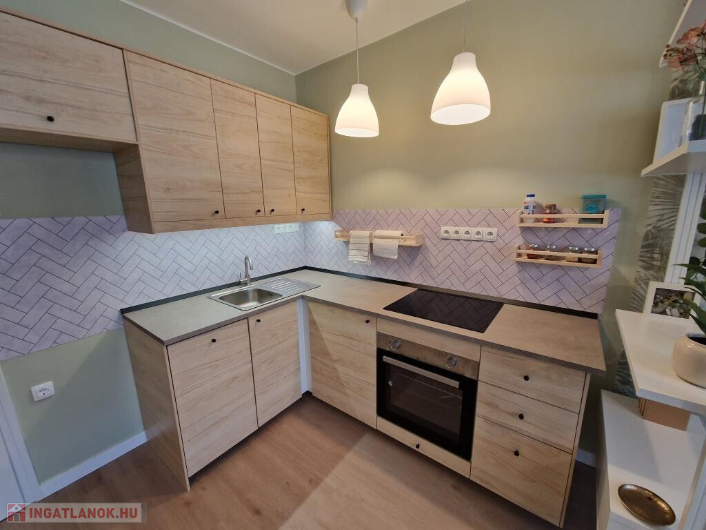 Kaposváron, a Petőfi utcában kínáljuk megvételre ezt a frissen és igazán igényesen felújított téglalakást. A társasház földszintjén helyezkedik el, alapterülete 51 m2. A felújítás teljeskörű volt, mindent érintett: újak a vezetékek, új a fűtés, új minden burkolat, új a beépített konyha a gépekkel együtt, új minden nyílászáró. A munkák során átalakítás is történt, a jelenlegi elosztás rendkívül praktikus: van két külön bejáratú hálószoba, - egyik kis gardróbbal, - amerikai konyhás nappali erkéllyel, zuhanyzós fürdő, külön WC, és az előtér. Minden külső nyílászáró műanyag keretes, hőszigetelt, a fűtés modern, elektromos radiátorokkal megoldott. Klíma felszereléséhez a villany leállás megvan, H-tarifás mérőóra is betehető. A konyhában beépített főzőlap, sütő és mosogatógép is helyet kapott. A lakás a benne lévő összes bútorral, gépekkel együtt eladó, azonnal költözhető. A tudatos tervezésnek, dizájnnak, a felhasznált pasztellszíneknek, a minőségi anyagoknak és munkának köszönhetően igazán barátságos, otthonos. Tartozik hozzá egy 3 m2-es saját tároló is. Környezete rendezett, parkos, kellemes. A belváros néhány perc sétával könnyen elérhető, de a közvetlen közelben is minden megtalálható, ami a hétköznapi élethez szükséges. Saját részre, vagy befektetésnek egyaránt kiváló.