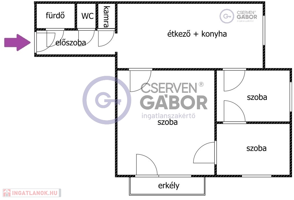 Az előszobából nyílik a fürdő és a WC egymástól elkülönülten, és harmadikként, egy kamra is, ami általában hiányzik a panellakások elrendezésének kínálatából, de itt ez is meg van.