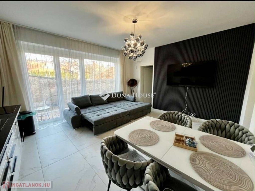 1 háló + amerikai konyha nappalis, kertes lakást.