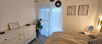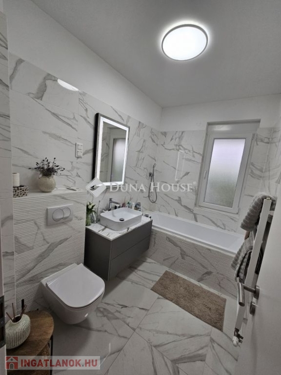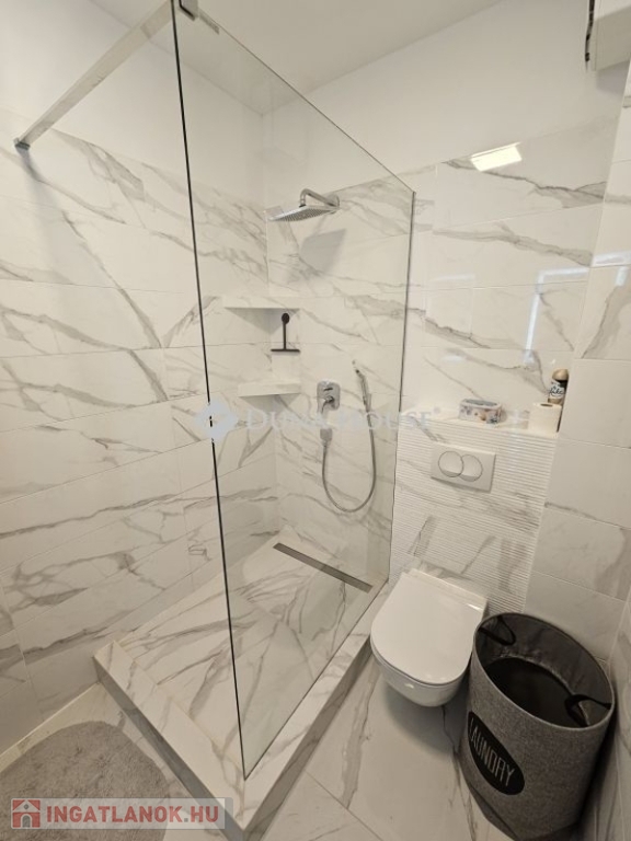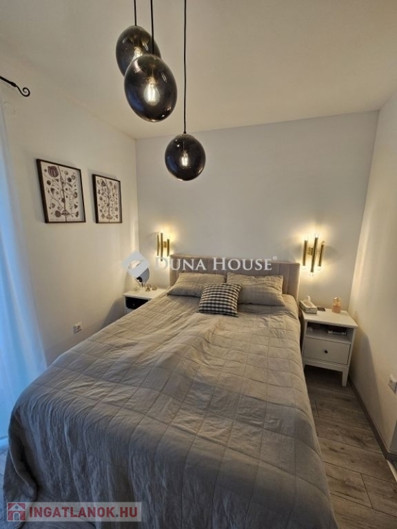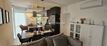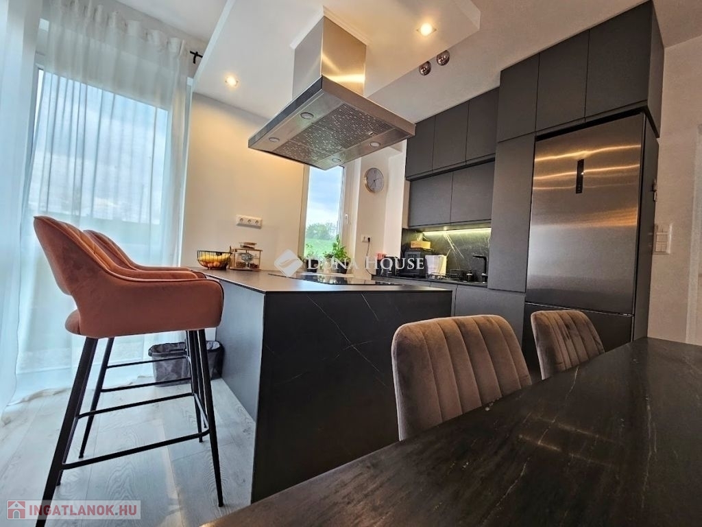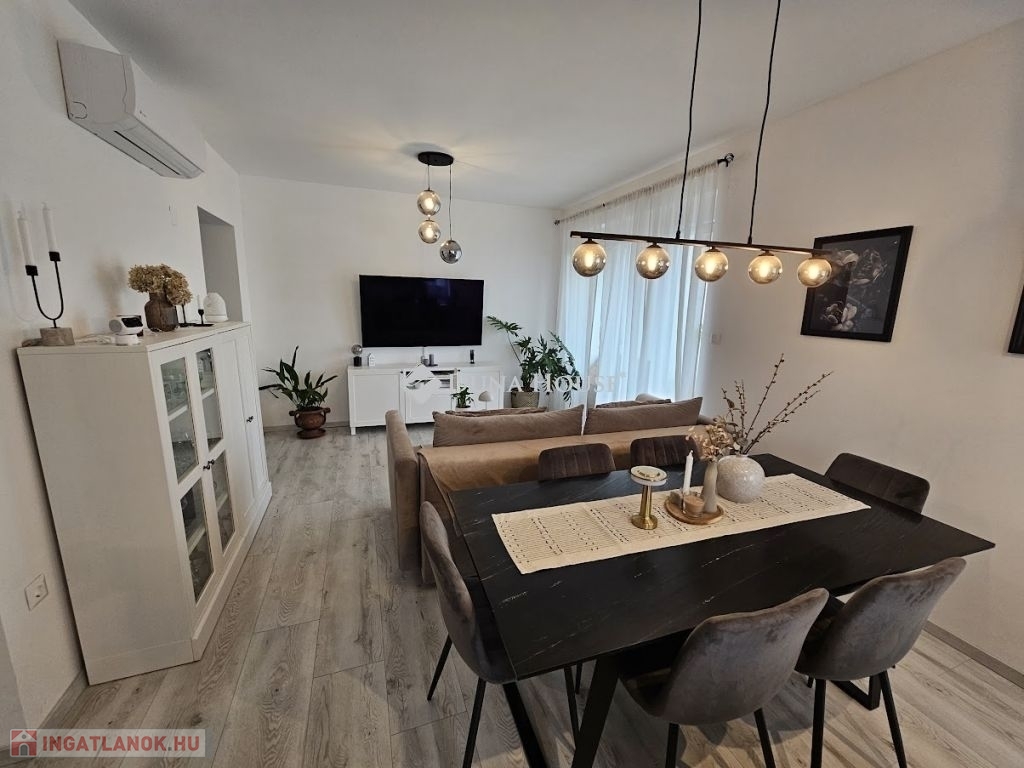 Eladó újszerű kertvárosi lakás, saját parkosított kertkapcsolattal!!!!!Pécs egyik csendes, zöldövezeti részén kínálunk megvételre egy 2023-ban átadott 92 m²-es földszinti lakást, amely minden igényt kielégítő belső kialakítással és kivételes külső adottságokkal rendelkezik.Kertkapcsolat és extra területekA lakáshoz tartozik egy 240 m²-es kizárólagos használatú, parkosított kert, benne egy könnyűszerkezetes, 10 m²-es kisházzal ideális tárolónak vagy hobbihelyiségnek.Két kényelmes terasz, mindkettő beépített, kinyitható árnyékolóval.A kertből kiskapun keresztül is eljuthatunk a két autóbeállóhoz, melyek közvetlenül a lakás előtt helyezkednek el.Belső elrendezés 3 hálószoba Tágas nappali-konyha-étkező egy légtérben 2 igényes fürdőszobaPrémium felszereltség FAP olasz hidegburkolatok Hansgrohe falba süllyesztett csaptelepek Blanco gránit mosogató és csaptelep a konyhában Minőségi német konyhabútor kompakt munkapulttal, konyhaszigettel Új, elektromos fehér alumínium redőnyök minden ablakon Hőszivattyús padlófűtés + fancoil hűtés a kellemes klímáért egész évben Alacsony rezsiköltségek, energiahatékony, és letisztult, igényes belső terek.Elhelyezkedés szempontjából is ideális:A belváros autóval mindössze 7 perc, de a tömegközlekedés is kiváló. A mindennapi ügyintézéshez szükséges szolgáltatások csupán egy percre találhatók: Tesco, Rossmann, gyógyszertár, minden gyalogosan is gyorsan elérhető.