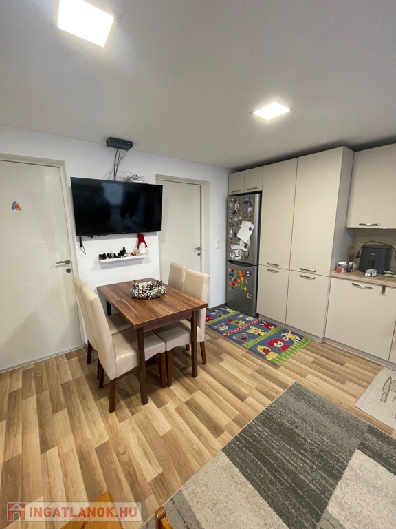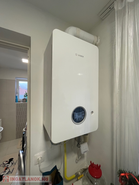 A teljesen gépesített konyhabútor a vételár részét képezi. Az otthon melegéről egyedi gázfűtés gondoskodik, radiátoros hőleadással.