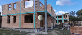 Az épület falai vasbetonból és 30 cm-es téglából épülnek. A homlokzaton 20 cm-es hőszigetelés. Tetőszerkezet 30 cm-es hőszigeteléssel kerül majd kialakításra. Az épület nyílászárói 3 rétegű üvegezésűek. A válaszfalak téglából épülnek. Az épület fűtése gázzal és hőszivattyúval történik, így megfelel a jelenkori energetikai előírásoknak. Az épületek besorolása AA+ . Megfelel a CSOK előírásainak.