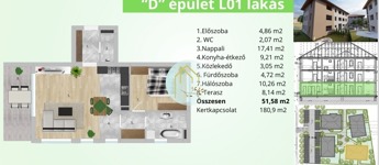 D épület 1-es számú lakása 180nm-es SAJÁT KERTTEL rendelkezik.