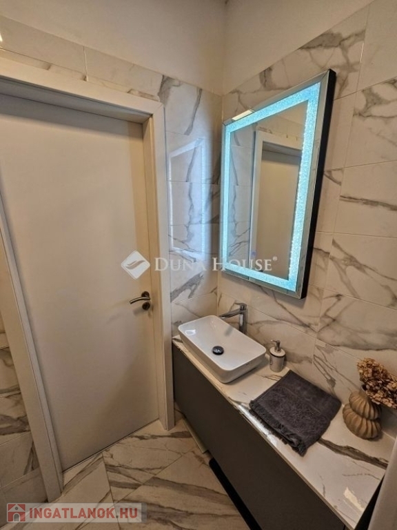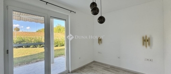 Eladó újszerű kertvárosi lakás, saját parkosított kertkapcsolattal!!!!!Pécs egyik csendes, zöldövezeti részén kínálunk megvételre egy 2023-ban átadott 92 m²-es földszinti lakást, amely minden igényt kielégítő belső kialakítással és kivételes külső adottságokkal rendelkezik.Kertkapcsolat és extra területekA lakáshoz tartozik egy 240 m²-es kizárólagos használatú, parkosított kert, benne egy könnyűszerkezetes, 10 m²-es kisházzal ideális tárolónak vagy hobbihelyiségnek.Két kényelmes terasz, mindkettő beépített, kinyitható árnyékolóval.Belső elrendezés 3 hálószoba Tágas nappali-konyha-étkező egy légtérben 2 igényes fürdőszobaPrémium felszereltség FAP olasz hidegburkolatok Hansgrohe falba süllyesztett csaptelepek Blanco gránit mosogató és csaptelep a konyhában Minőségi német konyhabútor kompakt munkapulttal, konyhaszigettel Új, elektromos fehér alumínium redőnyök minden ablakon Hőszivattyús padlófűtés + fancoil hűtés a kellemes klímáért egész évben Alacsony rezsiköltségek, energiahatékony, és letisztult, igényes belső terek.Elhelyezkedés szempontjából is ideális:A belváros autóval mindössze 7 perc, de a tömegközlekedés is kiváló. A mindennapi ügyintézéshez szükséges szolgáltatások csupán egy percre találhatók: Tesco, Rossmann, gyógyszertár, minden gyalogosan is gyorsan elérhető.