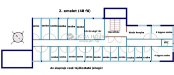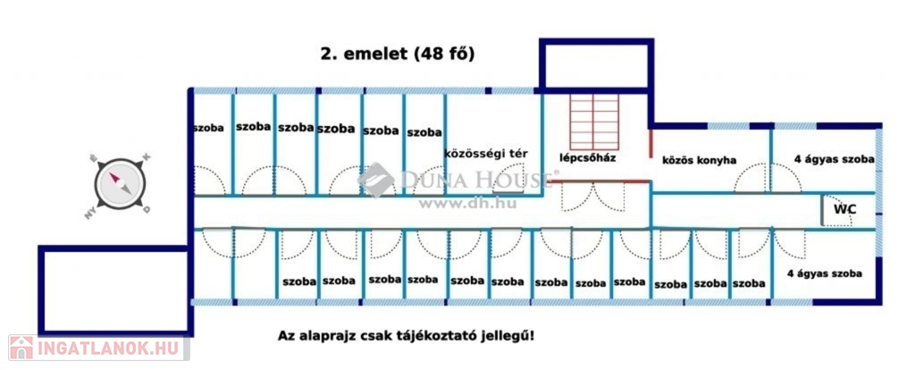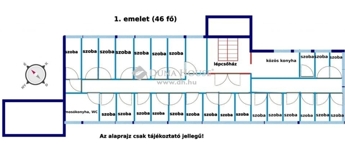 Helyiségek: 64 db 2 ágyas vagy 3 ágyas szoba