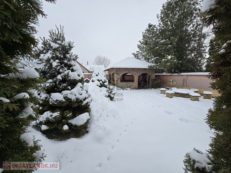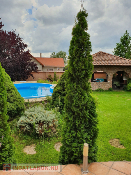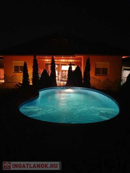 A medence fűthető ezért az első nyári napokon korán használatba vehető. Kertben kialakításra került egy kerti filagória ami a családi összejövetelek kiváló színtere lehet.