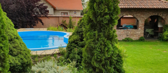 Az ingatlan teljesen körbekerített, mely biztosítja a család számára az udvaron található medence privát szféráját.