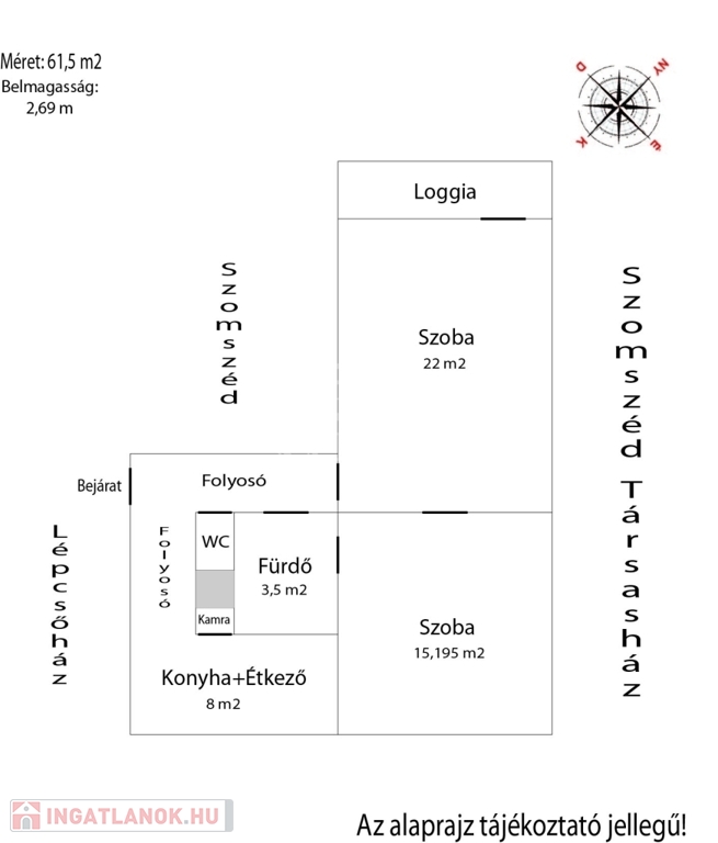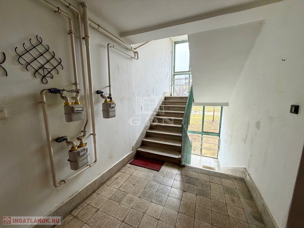 A 61,5 m2-es lakás a magasföldszinten helyezkedik el, délnyugati fekvéssel.