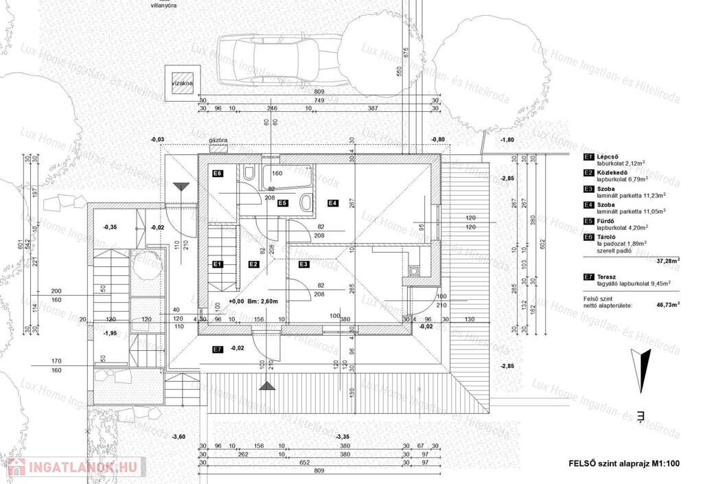 – Emelet: 2 különnyíló szoba, fürdőszoba
