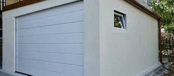 - garázskapu: Hörmann szekcionált, szigetelt kapu, motorral, távirányítóval, fehér színben (kérhető még: ezüst, antracit, aranytölgy, mahagón, dió színekben),