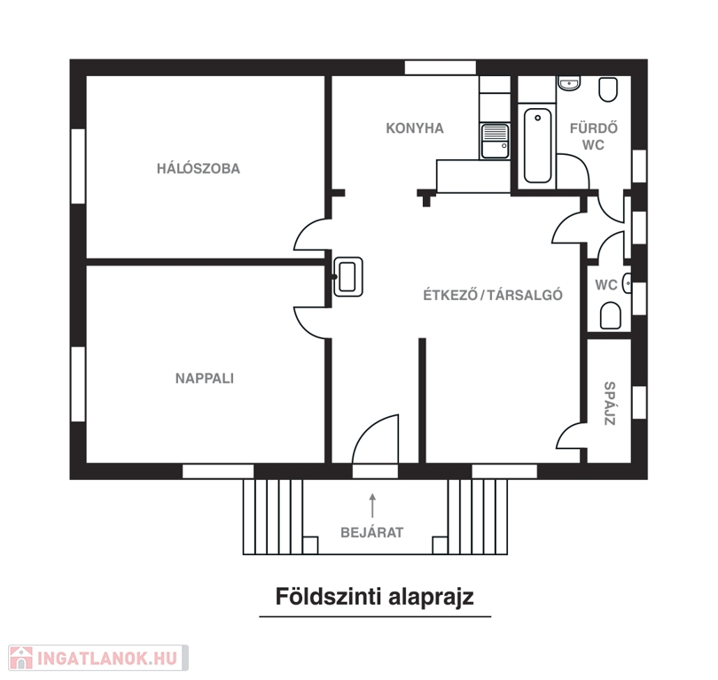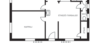 Elosztás: Nappali, étkező, 2 tágas szoba, konyha, fürdő-WC