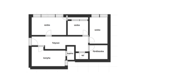 -külön nyíló szobák : 17,6 m² / 6,08 m² / 9,24 m,²