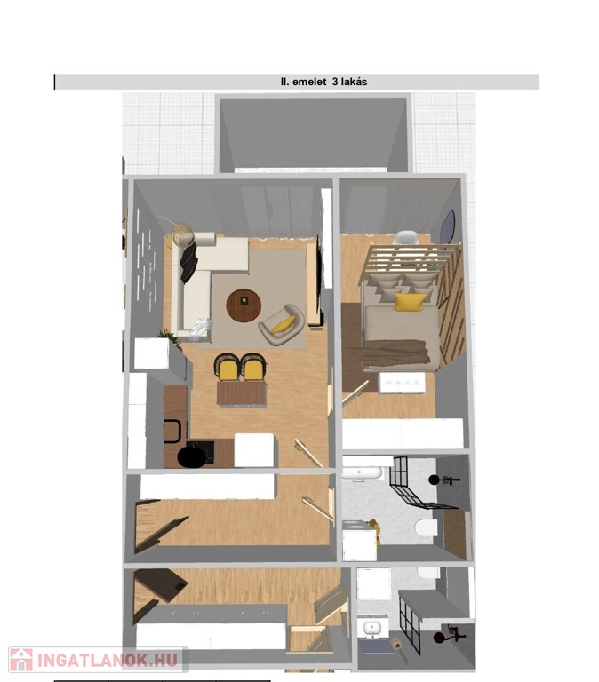 3.as lakás 43,61 nm + 5,7 nm erkély | N+1 szoba | Ár: 46,46 M Ft