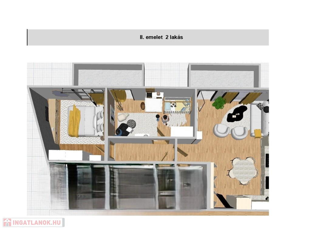 2.es lakás 37,74 nm + 5,7 nm erkély | N+1 szoba | Ár: 40,59 M Ft