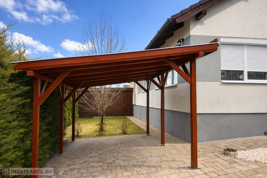 A bejárat egy 9,2m² teraszról nyílik,2 db melléképület található az ingatlan két oldalán,melyek közül a kisebbikben kézmosó és WC került kiépítésre. A nagyobb melléképület inkább tárolóként funkcionál. A ház déli -keleti és nyugati oldalakról nagy méretű redőnyös szúnyoghálós Aereco szellőztető rendszeres ablakokkal biztosítja a kellemes világos tereket. Riasztó berendezés, kaputelefon, szellőztető és öntöző rendszer teszik még komfortosabbá. Az ingatlan két oldalán könnyen karbantartható gondozott parkosított kert található,a környék csendes barátságos,a főváros 15 perc alatt elérhető kényelmesen.