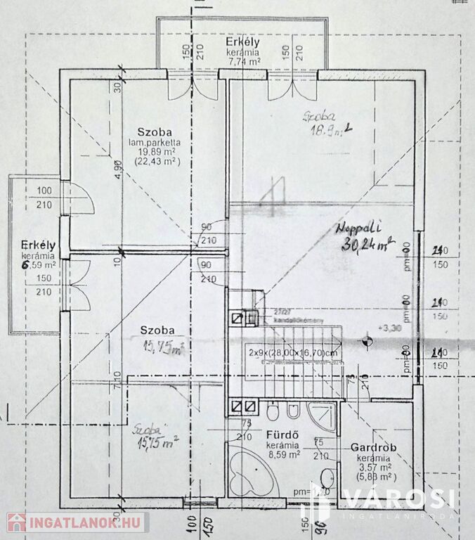 -Emelet: 4 szoba + 30 m²-es nappali , fürdőszoba, gardrób