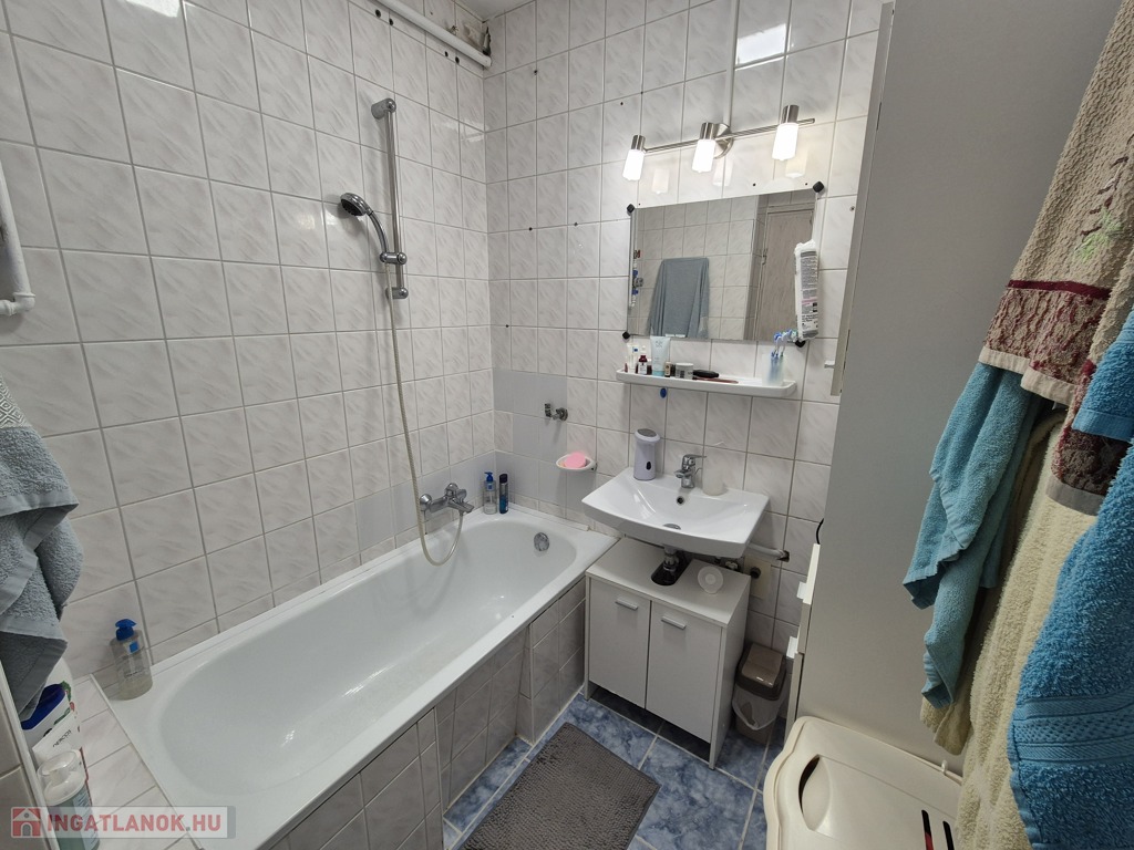 A lakás jó elosztású: 5 külön bejáratú szoba, erkély, külön háztartási helyiség, étkező konyha – kijárattal a kertbe, ahol saját kertész van. Napfényes, kelet-nyugat tájolású. Az ingatlan alacsony rezsiköltségű: a gázszámla havi elosztással 10.000 Ft (főzőgáz és meleg vízzel együtt), közös költség 15.000 Ft. A 8 lakásos, rendezett társasház lépcsőházának összes nyílászárója is új, műanyagra cserélt. Saját tároló tartozik a lakáshoz. A zöld, csendes környezetben a szomszédságban megtalálható buszmegálló, boltok, iskola, óvoda.