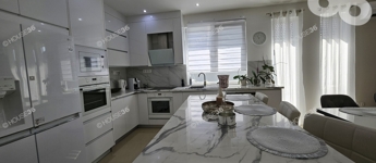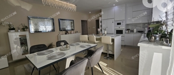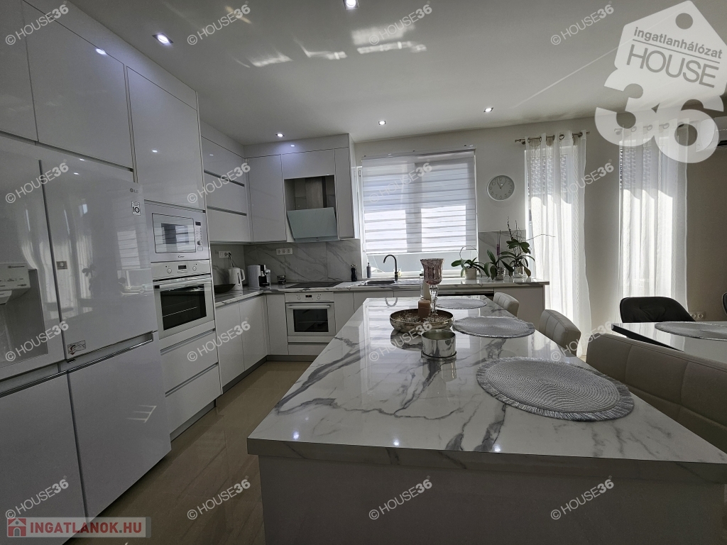 -magasfényű fehér konyhabútor beép. gépekkel, konyha szigettel