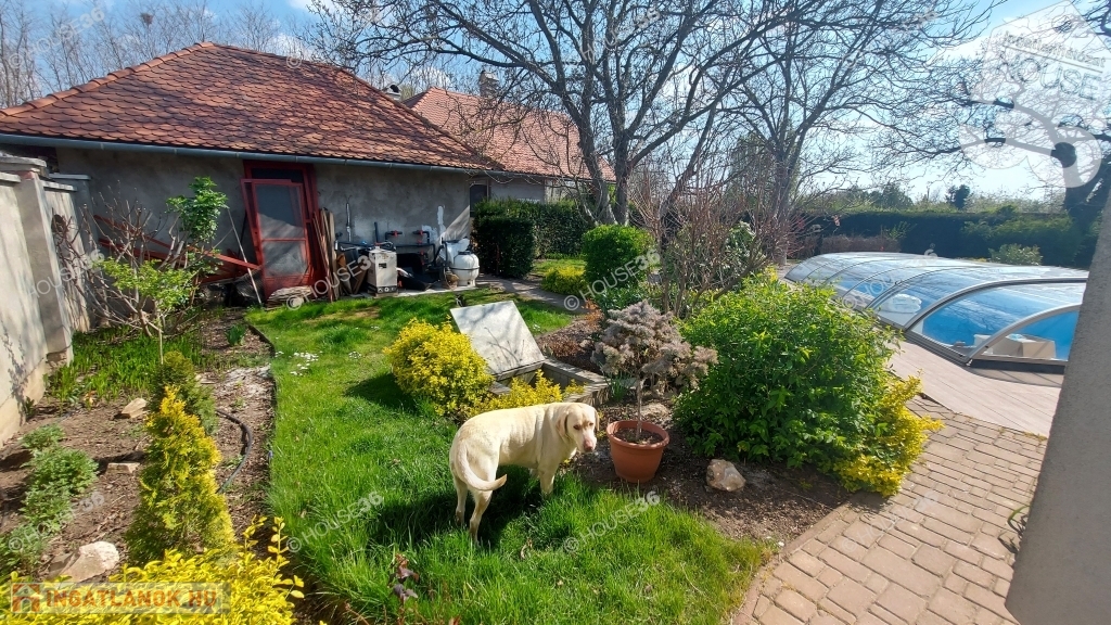 -telek 2 részre kerítve (elöl parkosítva, hátul kb.60 db.gyümölcsfa telepítve, szőlős)