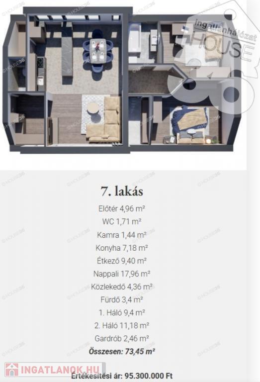 7-es lakás, 73,45 m2, I. emeleti, nappali + 2 szobás