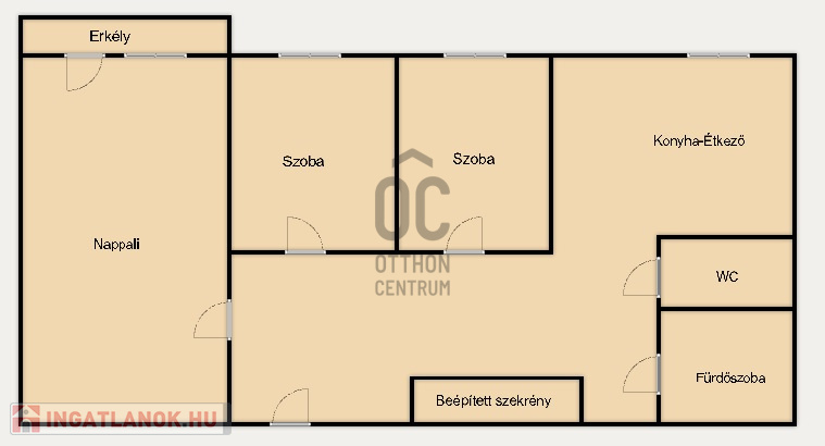 - 3 különnyíló szoba