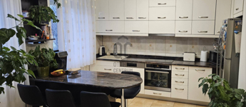 A konyha minőségi beépített bútorokkal és gépekkel, gránit munkapulttal készült, az étkezőnél bőven van hely a közös étkezésekhez.