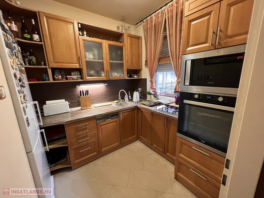 Az ingatlan jó állapotú, praktikus elosztásának köszönhetően ideális választás lehet fiatal pároknak, családoknak vagy akár befektetés céljára is. A lakás műanyag nyílászárókkal és redőnyökkel felszerelt, burkolatai igényesek, járólap és laminált padló kombinációjával. A beépített konyhabútor a vételár részét képezi. A fürdőszoba és a WC külön helyiségben található, ami a mindennapi kényelmet szolgálja. Az otthon melegéről egyedi gázfűtés gondoskodik, a kellemes hőmérsékletről pedig klímaberendezés is rendelkezésre áll.