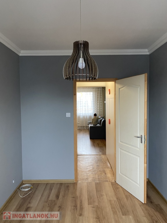 A lakás 68 m2 alapterületű, 1+3 szobás elrendezésű, melyhez tartozik egy 4 m2-es Bakony panorámás erkély fagyálló járólap burkolattal. Az eredeti beépített szekrények helyén modern gardróbszekrény és nyitott spejz polcrendszer került kialakításra. Az észak-déli tájolásnak köszönhetően nyáron nem tűz be a nap, télen viszont világos tereket kölcsönöz a lakásnak. A lakás kétrétegű műanyag nyílászárókkal és Hisec biztonsági bejárati ajtóval felszerelt, a szobákban jó minőségű, 7mm-es laminált parketta került lerakásra. A lépcsőház tiszta, rendezett, a lakóközösség nagyon kedves, segítőkész és csendes.