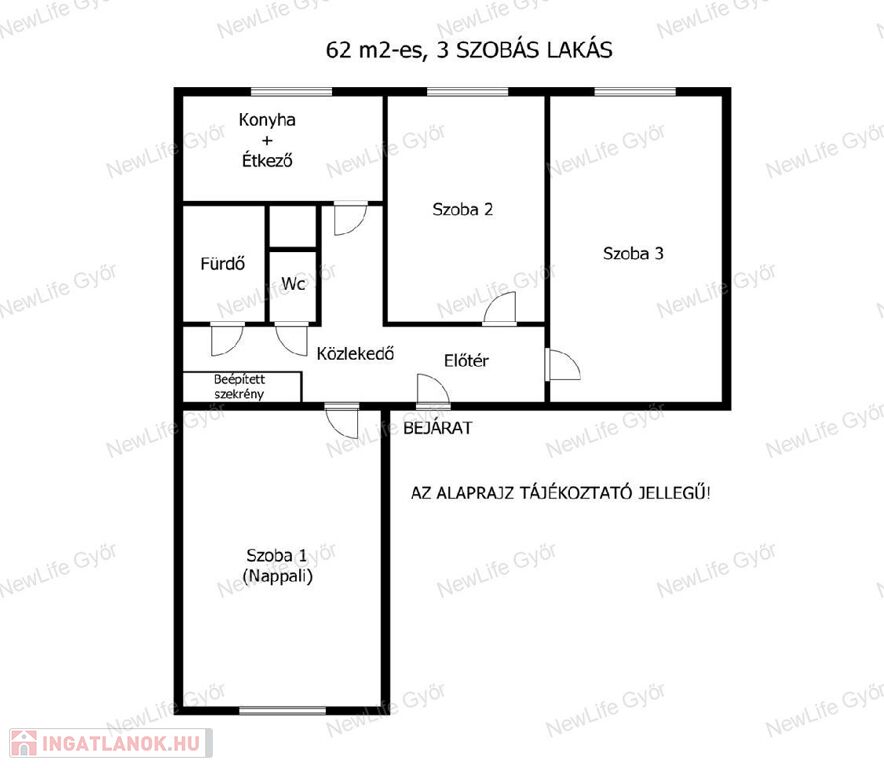 ✅ 62 m² alapterület (nappali + 2 külön nyíló hálószoba)