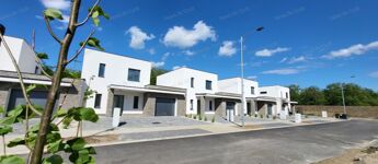 - Kényelmes garázs, és minden ház előtt saját térkövezett parkoló.