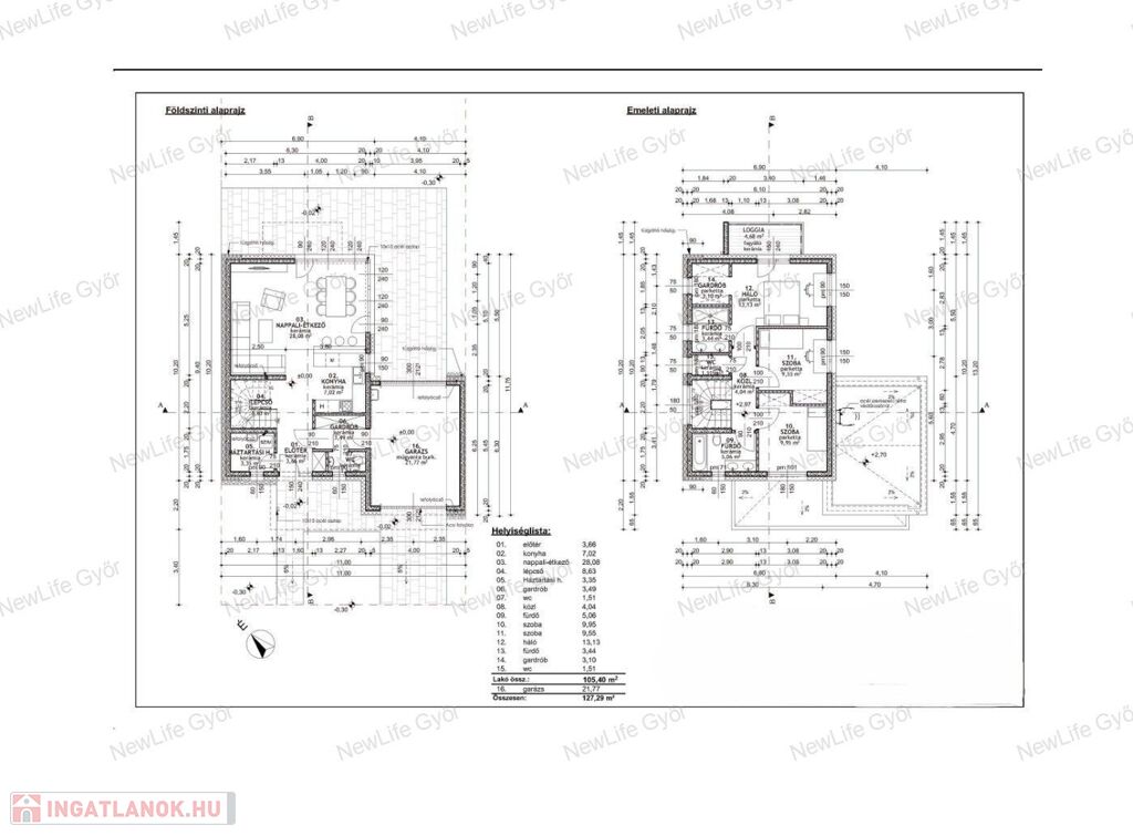 - Környezettudatos megoldások: hőszivattyú, 20 cm-es szigetelés, lapos tető, zajvédelem, zárt csapadékvíz-elvezetés.