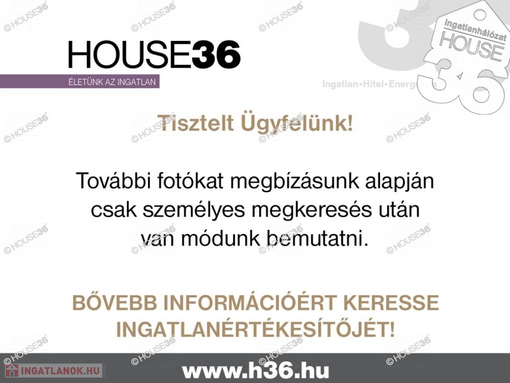 Figyelem! Az adatlap megbízónktól kapott adatok alapján készült, pontosságáért felelősséget nem tudunk vállalni! A iroda legfrissebb aktuális kínálatát a HOUSE36 saját weboldalán találja! Szolgáltatásaink kereső ügyfelein számára ingyenesek. Hitellel kapcsolatban forduljon hozzánk bizalommal.