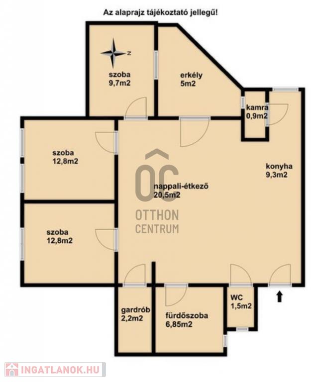 Helyiségek: 3 hálószoba, nappali-étkető-konyha, kamra, gardrób, fürdőszoba, külön WC kézmosóval és nyugati tájolású erkély.