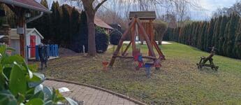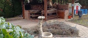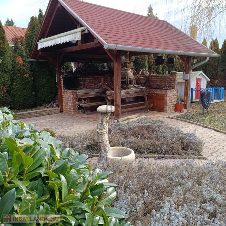 Az udvar 1528 m2 nagyságú, melyen épített, fedett kerti kemence kapott helyet. Az udvar további részén 2023-ban egy impozáns 30 m2 nagyságú úszómedence is kialakításra került. Mellette egy 25 m2 csodaszép fedett kerti pihenőhely biztosítja a családi és baráti összejövetelek önfeledt kikapcsolódását és pihenését.
