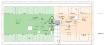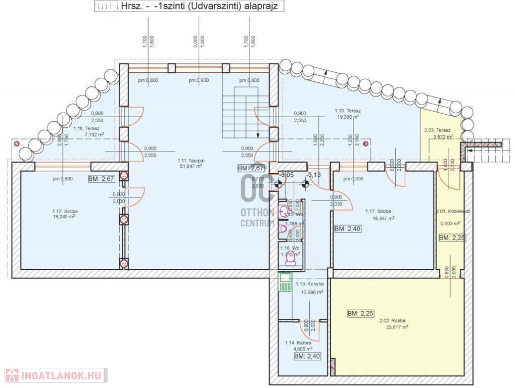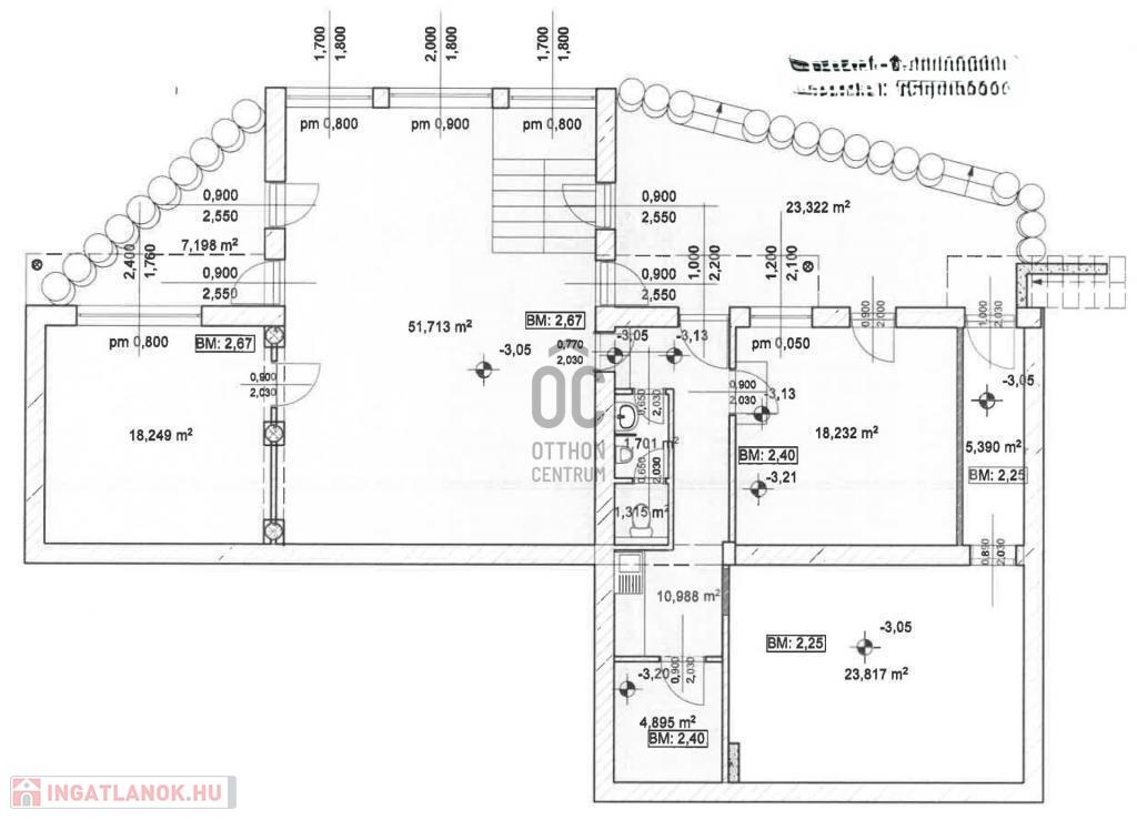 - Ezeken kívül egy közlekedő, raktár, terasz lett leválasztva, 33,2 m2 nagyságban, illetve egy garázs, ami 23,6 m2.