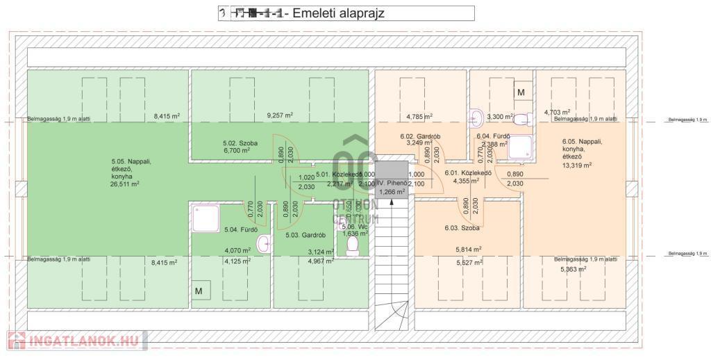 - Társasházzá alakítás során 6 külön helyrajzi számon, 4 különálló lakás, tároló, garázs és közös helyiségek lettek megtervezve.